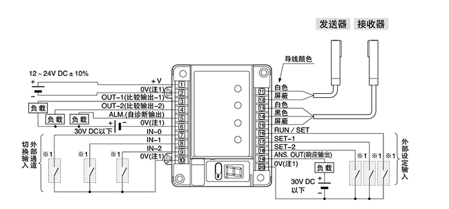 | 电缆 | 发送器:带0.3mm2 单芯屏蔽电缆3m 接收器:带0.1mm2 双芯屏蔽电缆3m | 发送器:带0.5mm2单芯屏蔽电缆3m 接收器:带0.3mm2双芯屏蔽电缆3m | ||||||