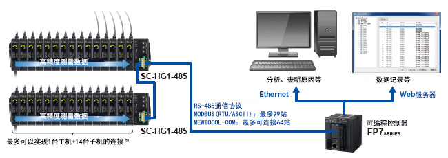 | 连 接 台 数 | 上位(RS-485) | MODBUS(RTU/ASCII)设定时站数:99台以下 / MEWTOCOL-COM设定时站数:64台以下 |