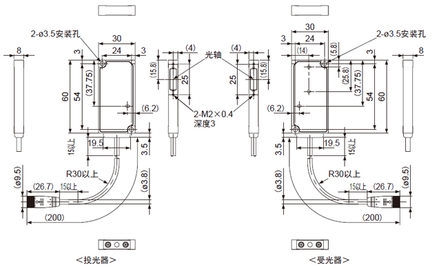 | 本体质量 | 投光器:约30g、受光器:约30g | 投光器:约30g、受光器:约25g | |