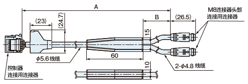 传感器光头通过连接电缆连接,投·受光端的位置关系可在控制器启动时自动判别。 所以在投・受光器的配线时,需要分别识别电缆。配线作业时,可以实现简单配线的连接器连接。 | ![]() ※传感器光头的连接电缆的传感器光头端,为两股电缆无法区别投光端和受光端。 |